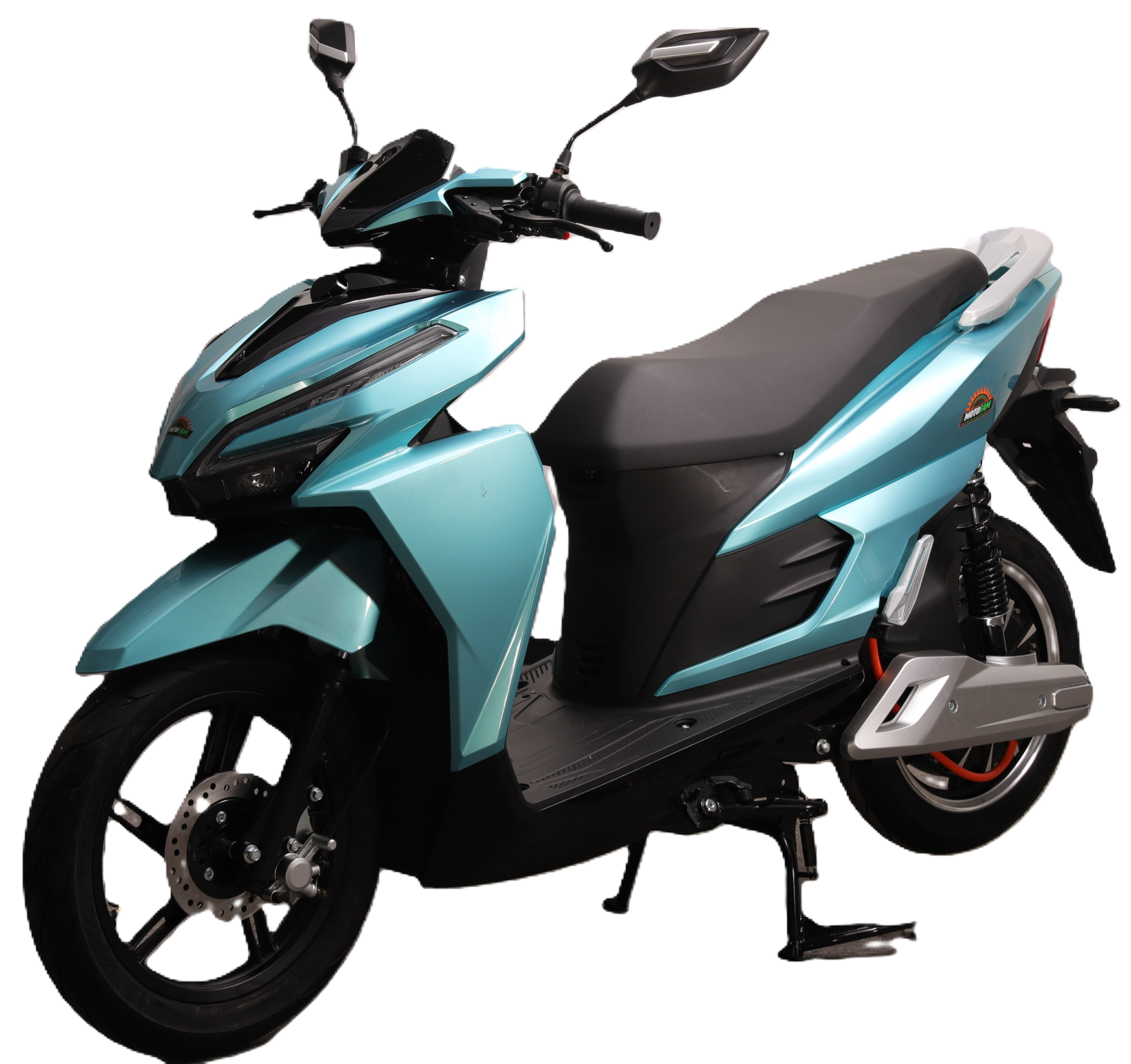 Motor silenciosoConducción suave3 velocidadesBatería litio de 72V/40AhMotor de 72V/3000WVelocidad 94 km/hrFrenos de disco